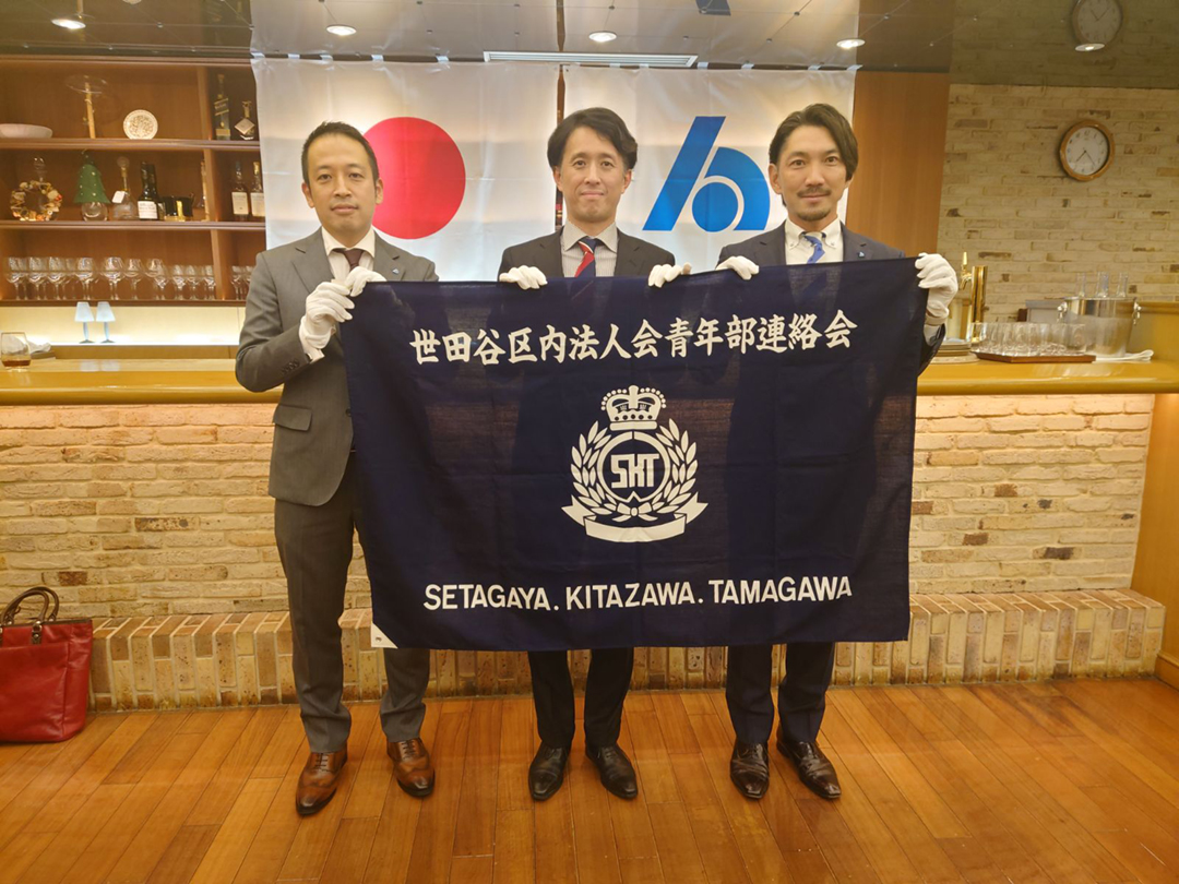 フラッグ伝達式では、玉川法人会青年部会長から世田谷法人会青年部会長へフラッグが受け継がれました。